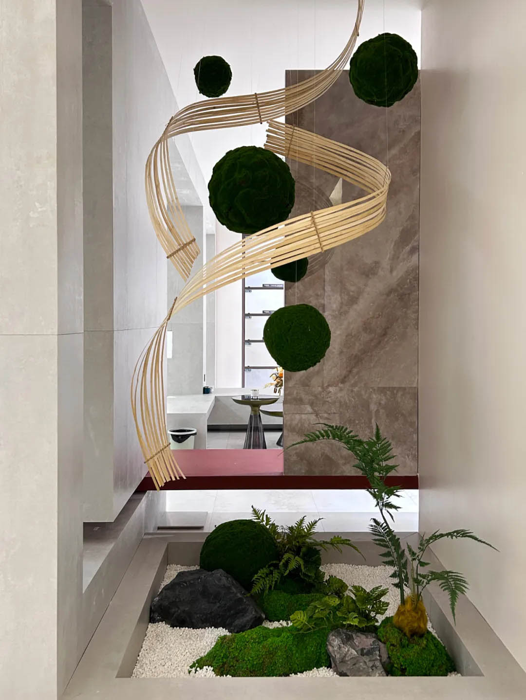 空間設計的展示,是設計師對于文化表達、空間架構和藝術重組能力的展現,傾聽、感受、對話,空間與人、空間與空間的關系。于是在這鬧市中,便有了一方遠離喧囂的自在空間。