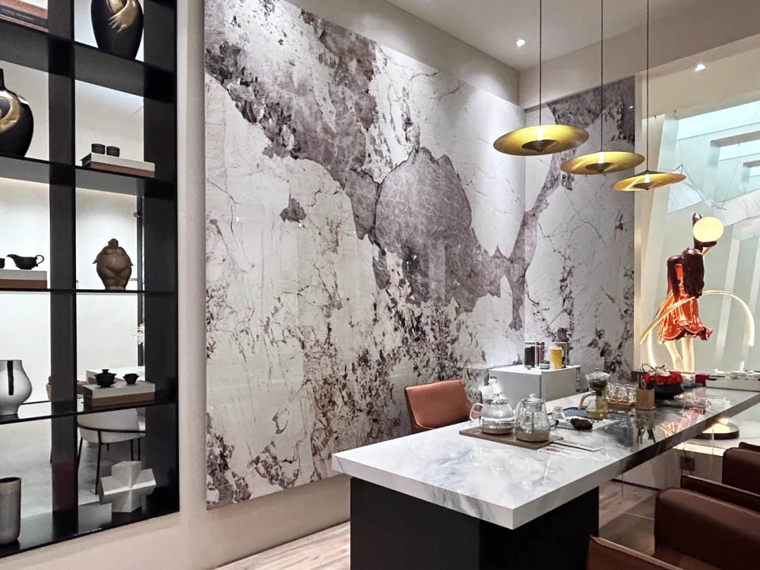 緩步于店內,每一片瓷磚猶如立體的畫卷,高級的色彩與紋理變化,述說簡約、純粹、深邃的材料美學。方寸間演繹著萬千景象,將自然與藝術展現得淋漓盡致。