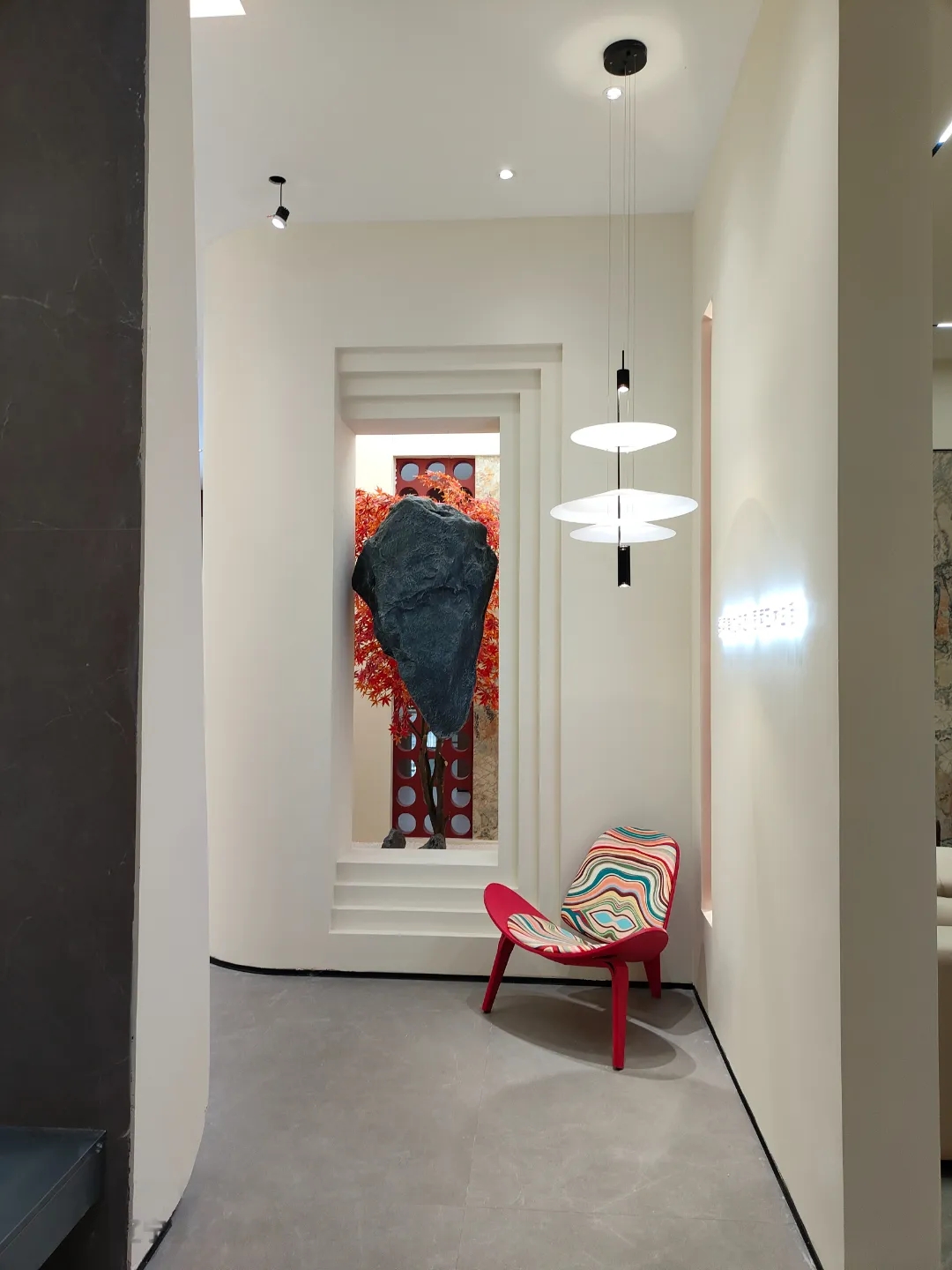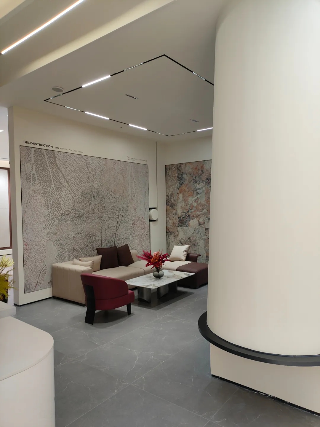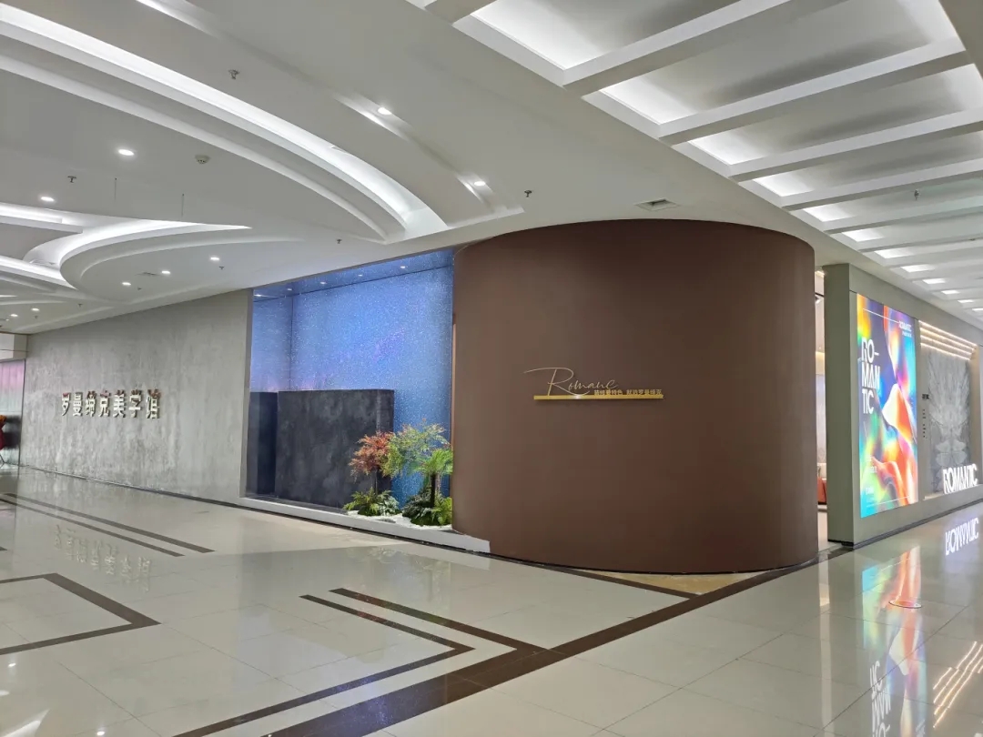 空間序列感十足的選材區,在周圍暗色環境中凸顯效果,復刻珍稀石材紋理,配合方正周列的秩序感,還原自然所營造的情緒體驗,就像是在探索藝術中的沉浸式精神狂歡。